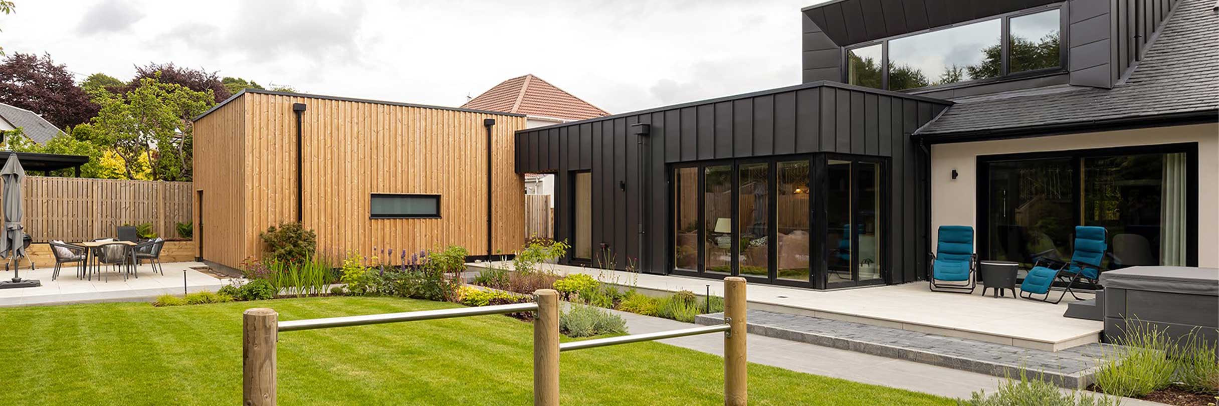 The property is in Glasgow, and it was just purchased in order to be extended into a place of peace, relaxation and entertainment by creating a high-quality indoor and outdoor space that the whole family and friends could use. The heart of the house is on the ground floor: everyday life takes place in the living and dining area. Characteristic of this area are the generous frameless sliding window/doors elements, which bring the outside space into the house and highlight the visual axes. The L-shaped new house’s extension allows the kitchen and living room to coexist together without physically separating the rooms from each other and at the same time further enhances the open living feeling.