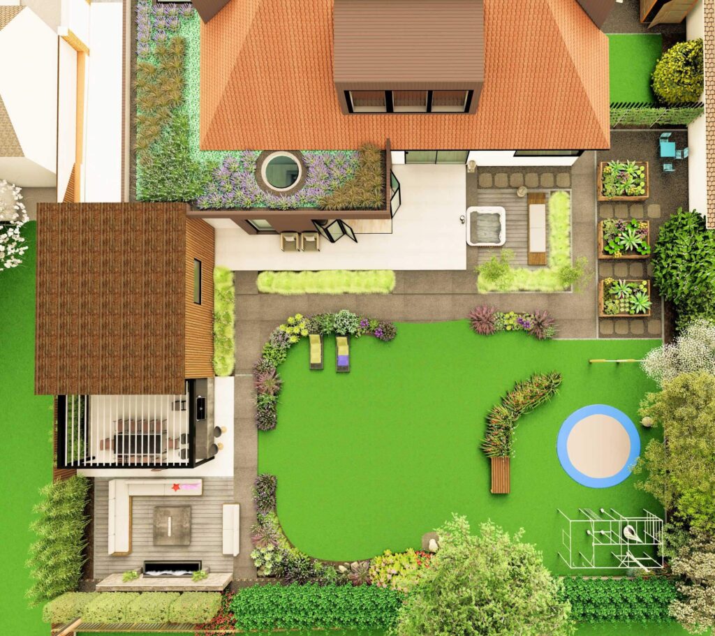 Since the whole family love spending time outdoors, the garden design is of particular interest for the owners in order to create an engaging and functional outdoor environment where the family comes together and celebrates ‘The Genius Loci’, the spirit of the place.